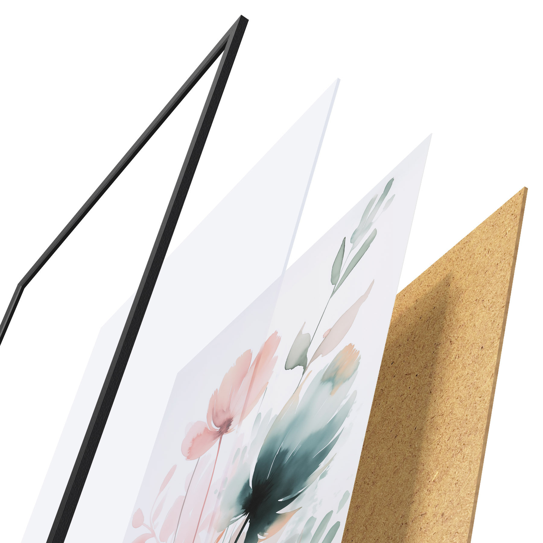Das Poster besteht aus einem Rahmen, Plexiglas, einem gedruckten Bild und einer Rückwand aus Spanplatten. Dank der Halterungen auf der Rückseite kann das Poster sofort an die Wand gehängt werden.