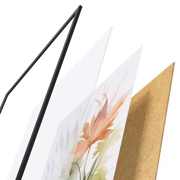 Das Poster besteht aus einem Rahmen, Plexiglas, einem gedruckten Bild und einer Rückwand aus Spanplatten. Dank der Halterungen auf der Rückseite kann das Poster sofort an die Wand gehängt werden.