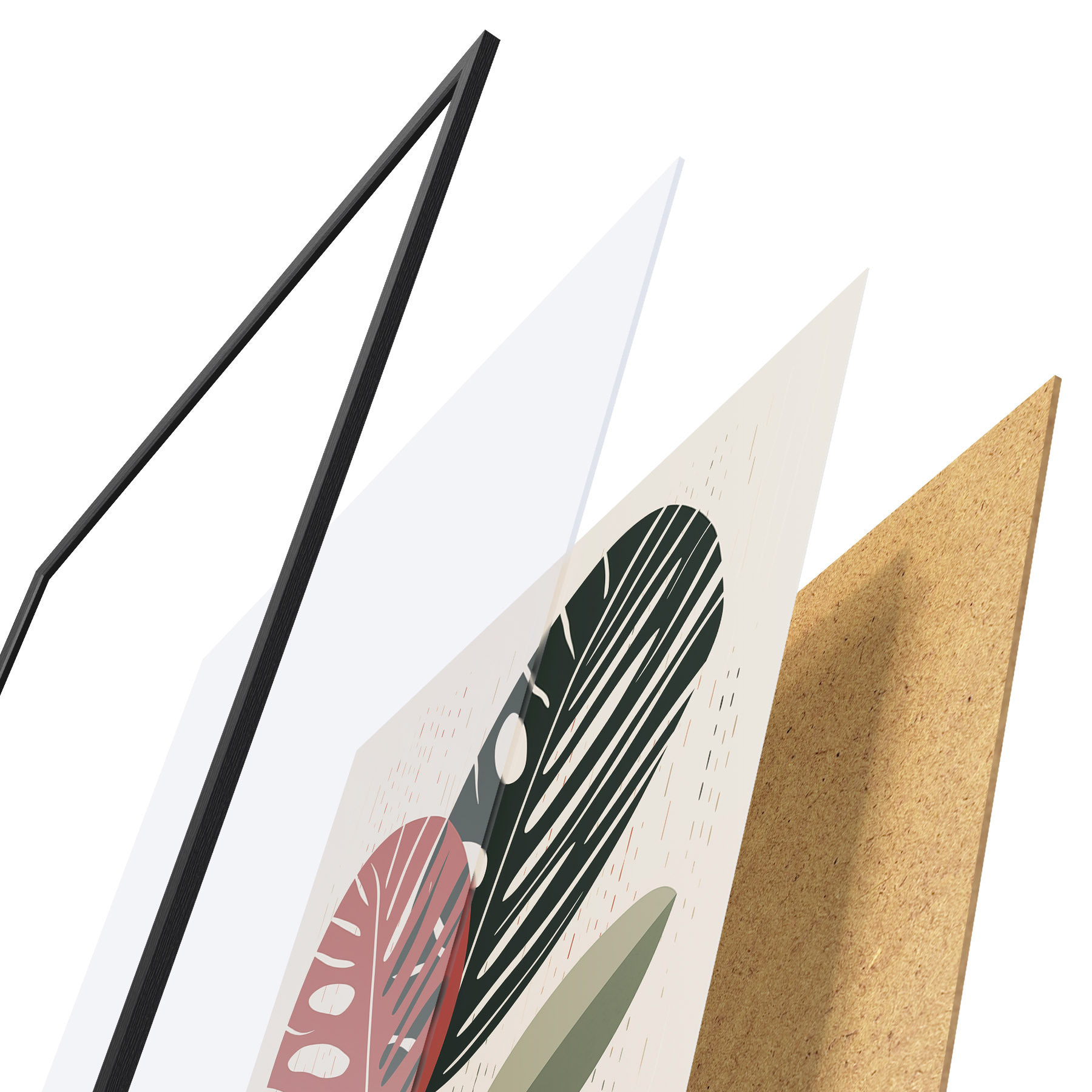 Das Poster besteht aus einem Rahmen, Plexiglas, einem gedruckten Bild und einer Rückwand aus Spanplatten. Dank der Halterungen auf der Rückseite kann das Poster sofort an die Wand gehängt werden.