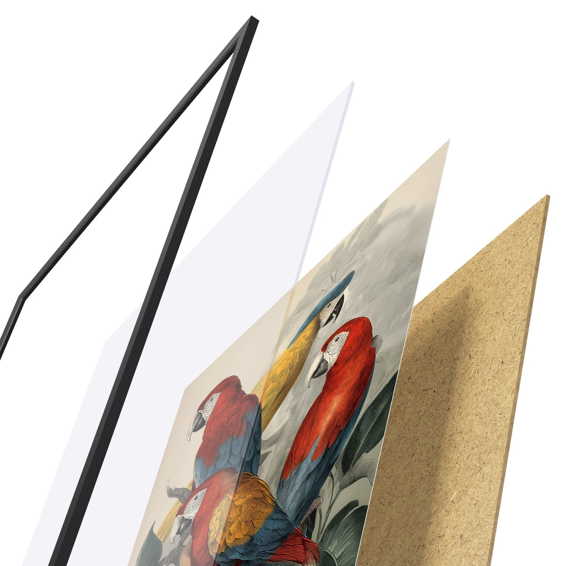 Das Poster besteht aus einem Rahmen, Plexiglas, einem gedruckten Bild und einer Rückwand aus Spanplatten. Dank der Halterungen auf der Rückseite kann das Poster sofort an die Wand gehängt werden.