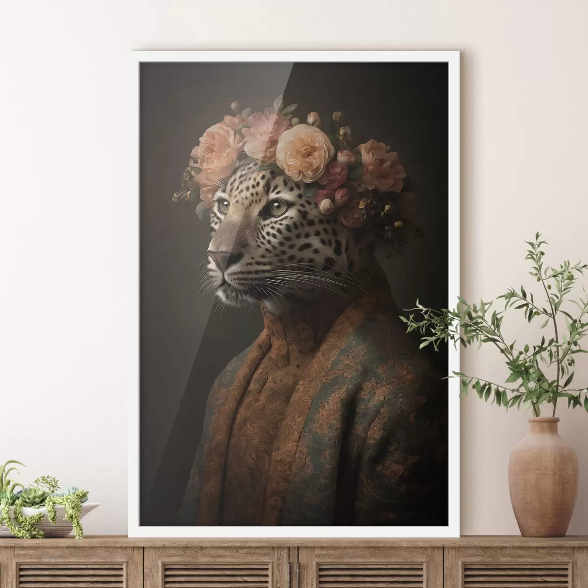 Poster Leopard mit Blumen Nr f47737