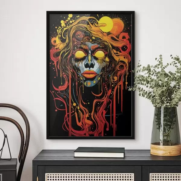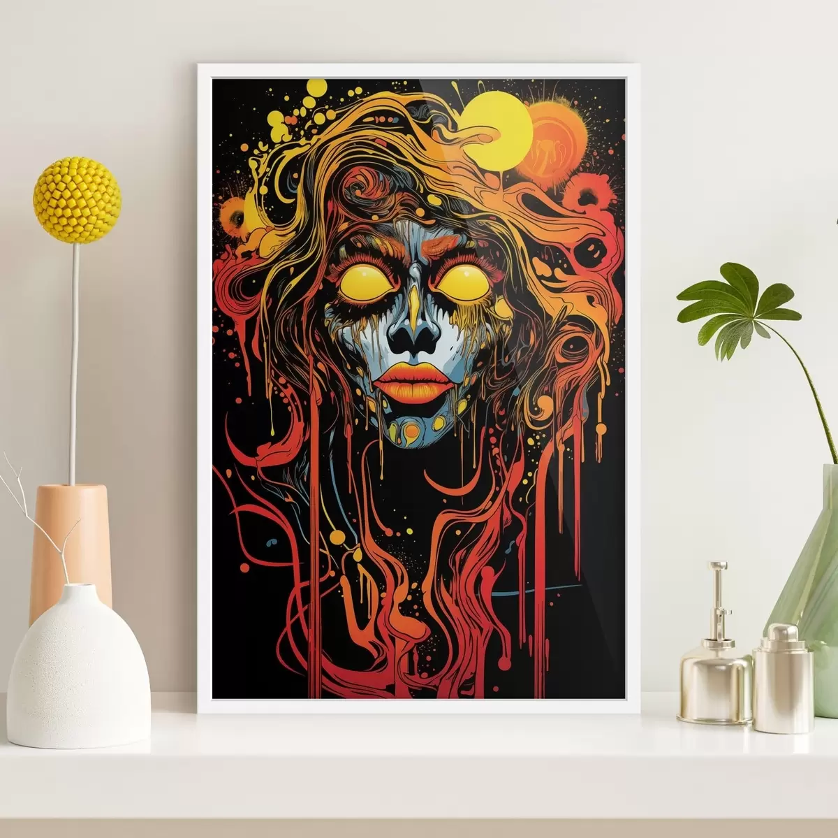 Das Poster besteht aus einem Rahmen, Plexiglas, einem gedruckten Bild und einer Rückwand aus Spanplatten. Dank der Halterungen auf der Rückseite kann das Poster sofort an die Wand gehängt werden.