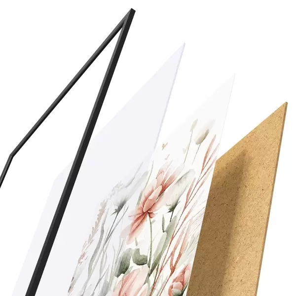 Das Poster besteht aus einem Rahmen, Plexiglas, einem gedruckten Bild und einer Rückwand aus Spanplatten. Dank der Halterungen auf der Rückseite kann das Poster sofort an die Wand gehängt werden.