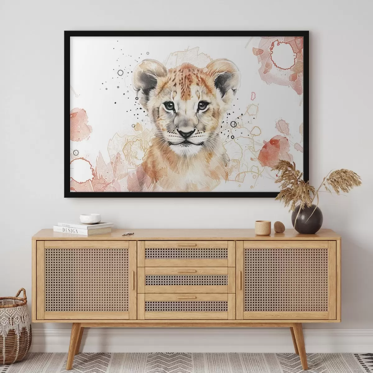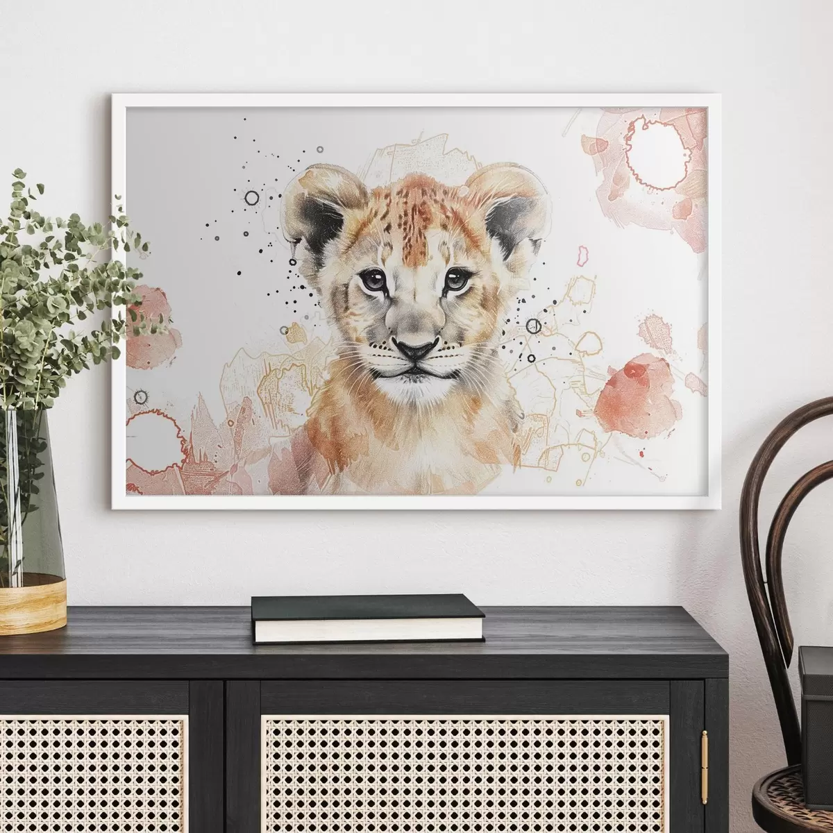 Poster Aquarell-Löwenjunges, Bleistift-Effekt Nr f47742