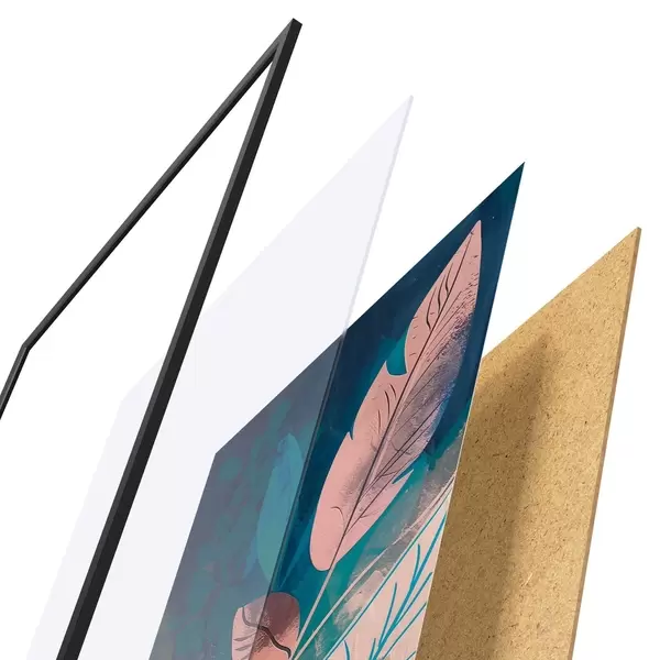 Das Poster besteht aus einem Rahmen, Plexiglas, einem gedruckten Bild und einer Rückwand aus Spanplatten. Dank der Halterungen auf der Rückseite kann das Poster sofort an die Wand gehängt werden.
