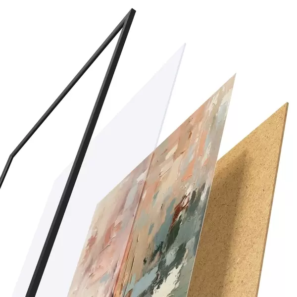 Das Poster besteht aus einem Rahmen, Plexiglas, einem gedruckten Bild und einer Rückwand aus Spanplatten. Dank der Halterungen auf der Rückseite kann das Poster sofort an die Wand gehängt werden.