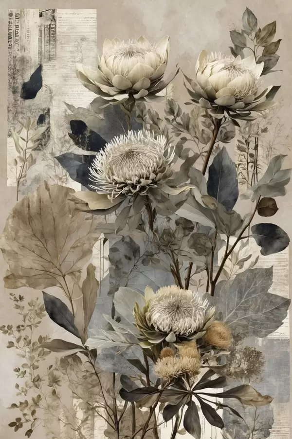 Poster Botanische Komposition in gedämpfter Farbpalette Nr f47755