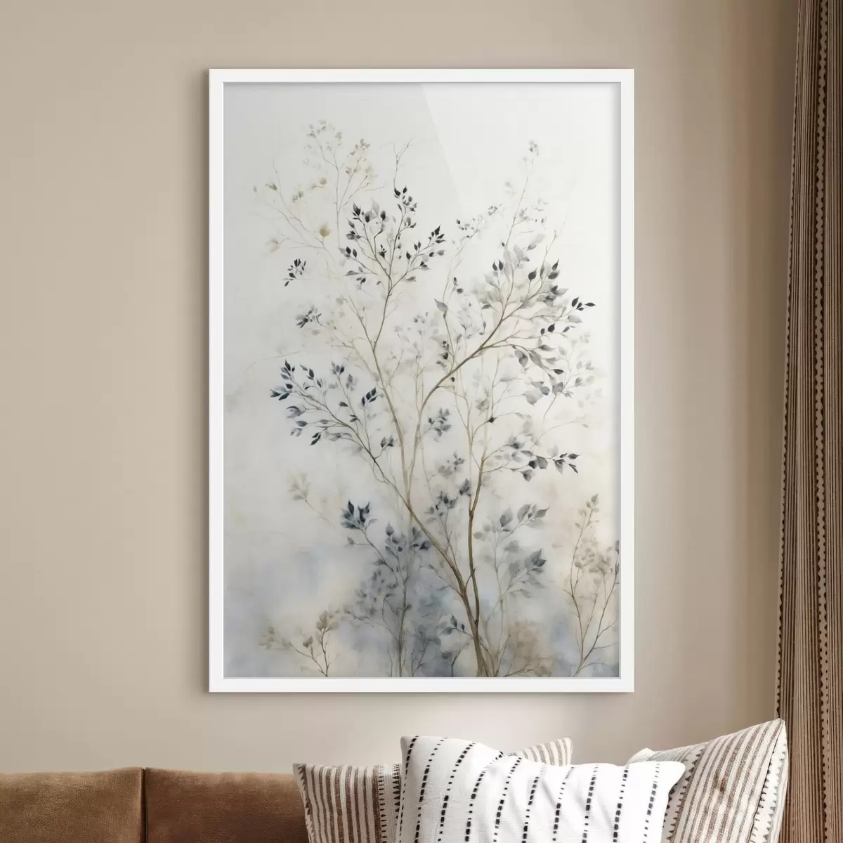 Poster Zarte Zweige mit kleinen Blättern auf hellem Hintergrund f47763