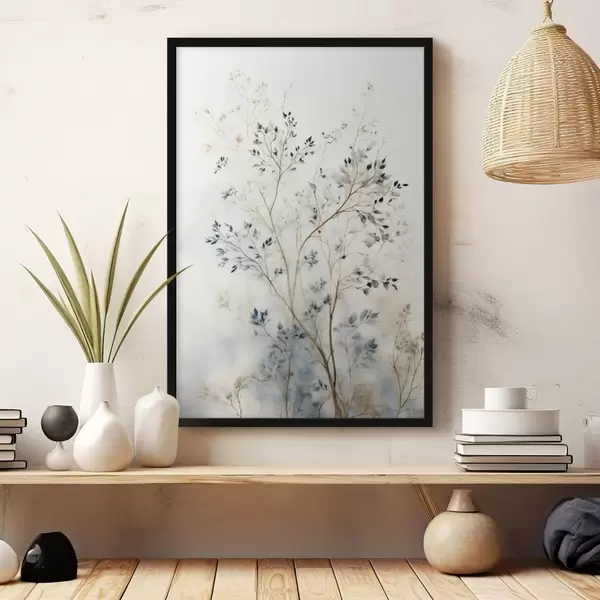 Poster Zarte Zweige mit kleinen Blättern auf hellem Hintergrund Nr f47763