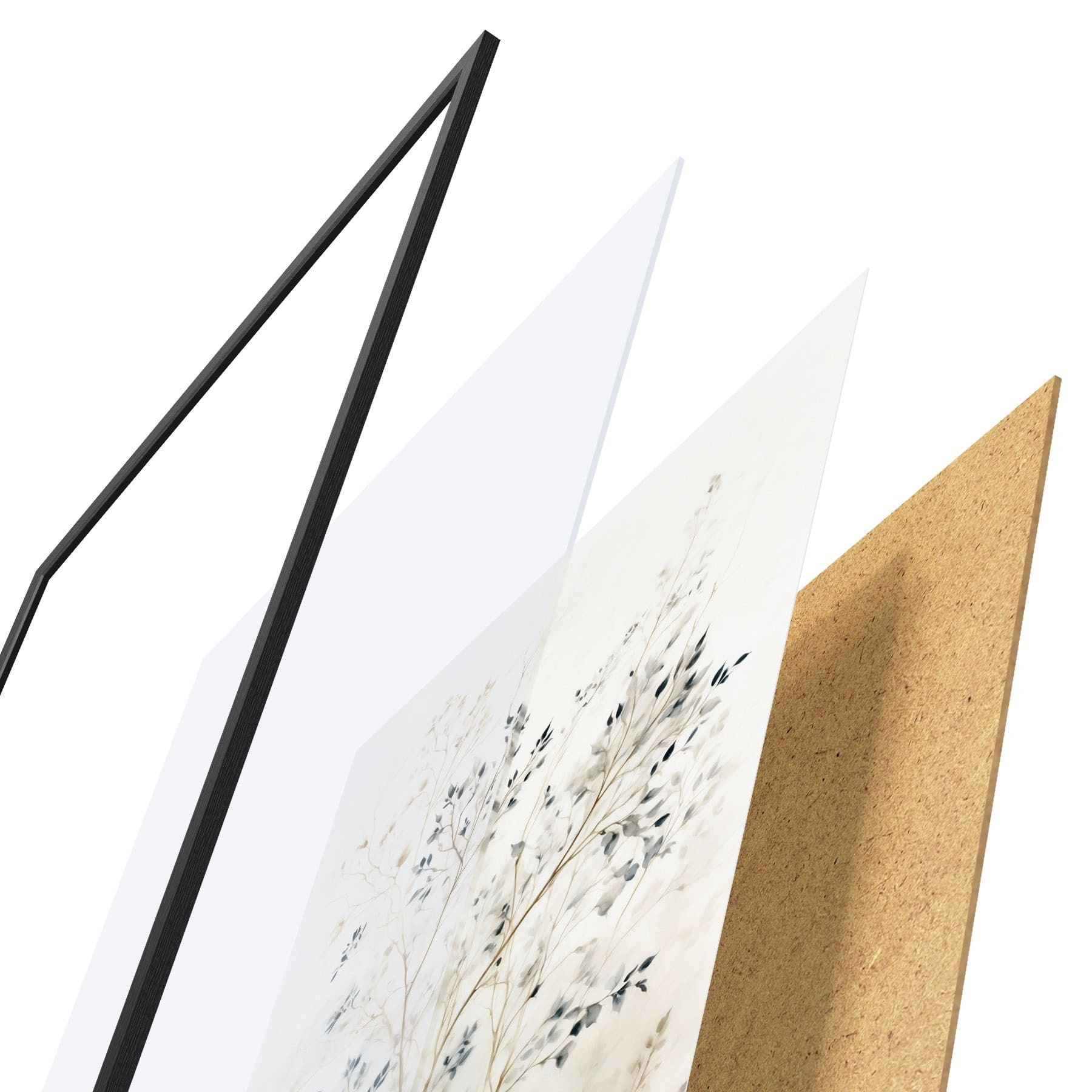 Das Poster besteht aus einem Rahmen, Plexiglas, einem gedruckten Bild und einer Rückwand aus Spanplatten. Dank der Halterungen auf der Rückseite kann das Poster sofort an die Wand gehängt werden.