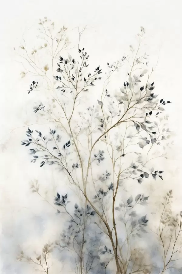 Poster Zarte Zweige mit kleinen Blättern auf hellem Hintergrund Nr f47763