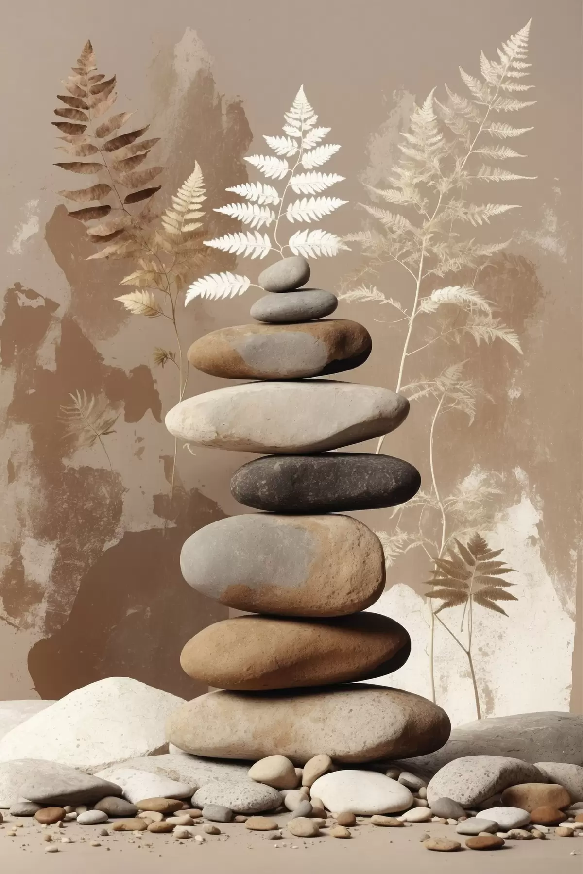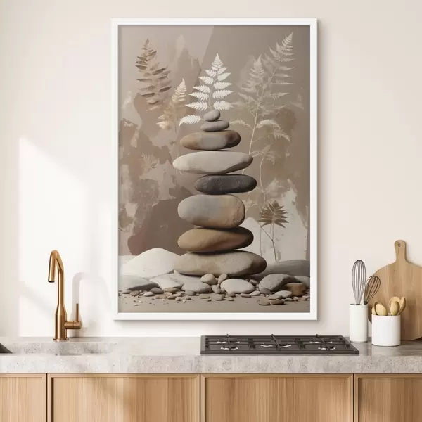 Poster Stapel glatter Steine vor botanischem Hintergrund Nr f47764
