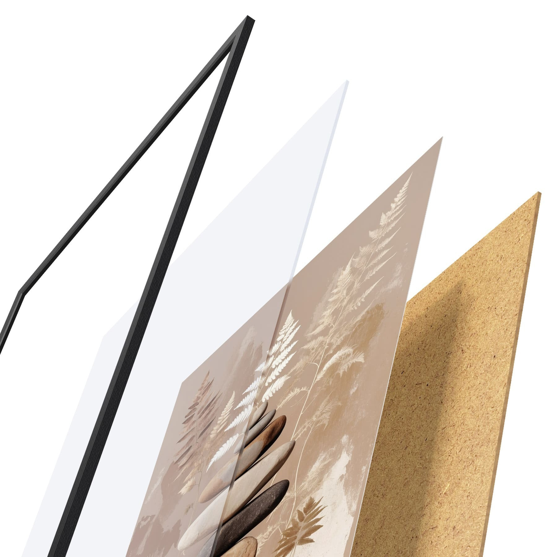 Das Poster besteht aus einem Rahmen, Plexiglas, einem gedruckten Bild und einer Rückwand aus Spanplatten. Dank der Halterungen auf der Rückseite kann das Poster sofort an die Wand gehängt werden.