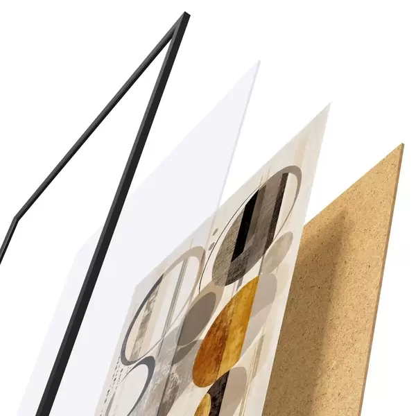 Das Poster besteht aus einem Rahmen, Plexiglas, einem gedruckten Bild und einer Rückwand aus Spanplatten. Dank der Halterungen auf der Rückseite kann das Poster sofort an die Wand gehängt werden.