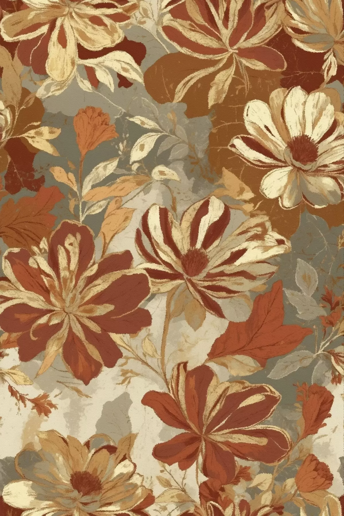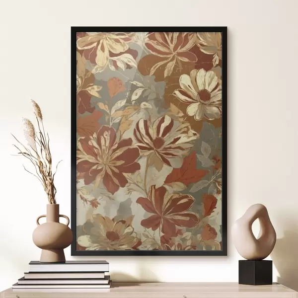 Poster Blumenmuster in warmen Rost- und Cremetönen Nr f47770