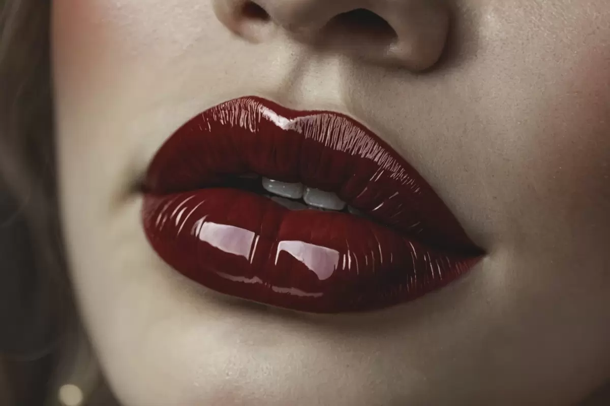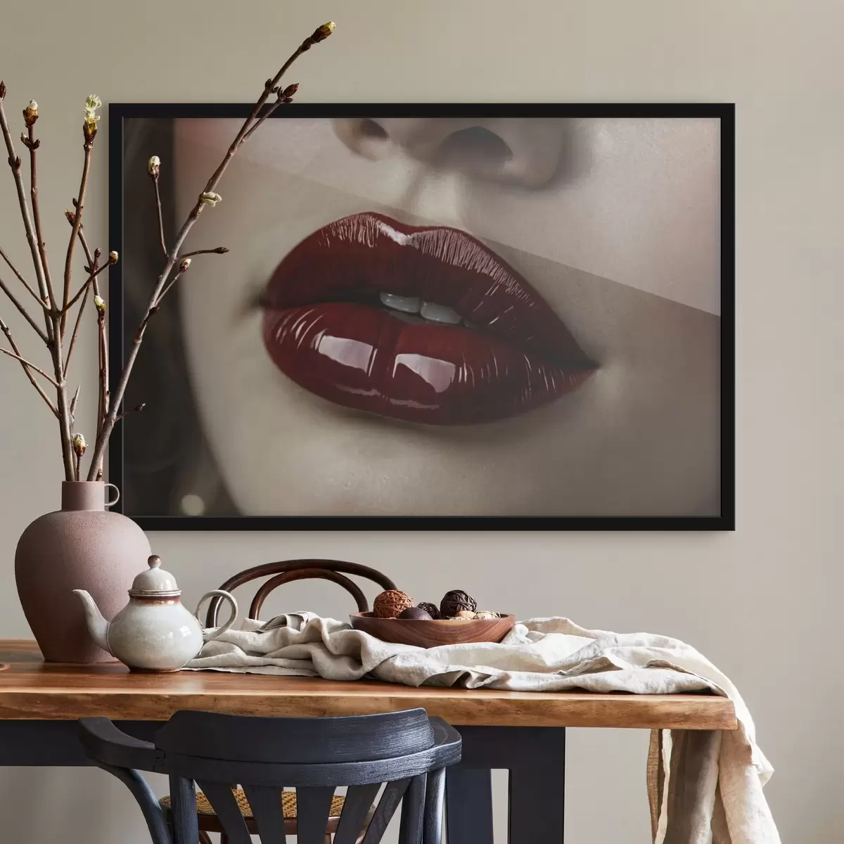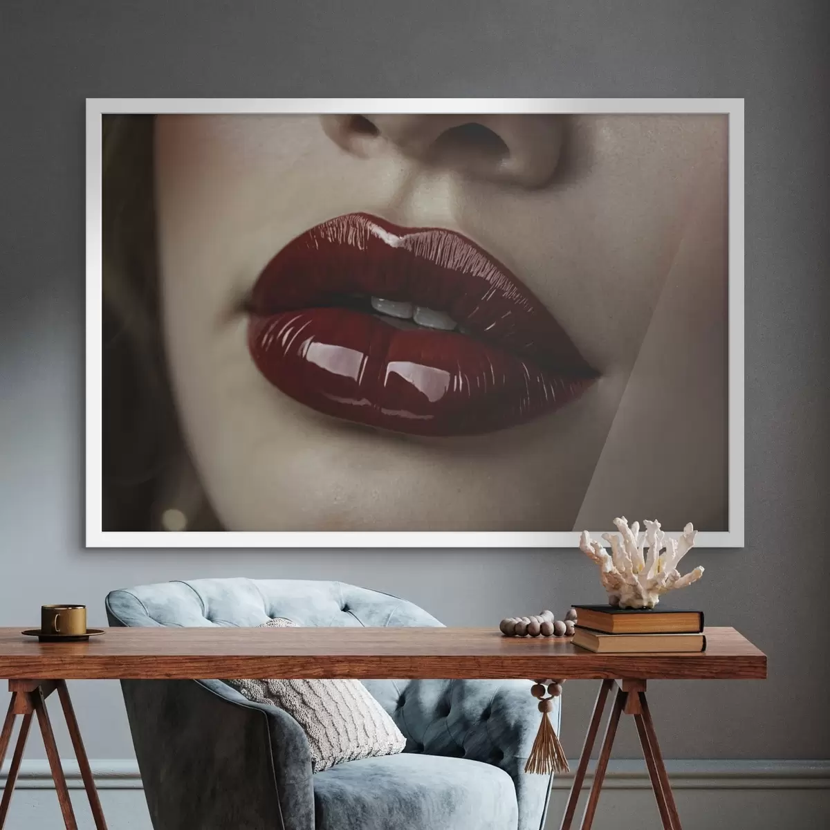 Poster Nahaufnahme von glänzenden roten Lippen f47772