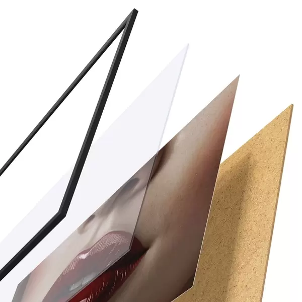 Das Poster besteht aus einem Rahmen, Plexiglas, einem gedruckten Bild und einer Rückwand aus Spanplatten. Dank der Halterungen auf der Rückseite kann das Poster sofort an die Wand gehängt werden.