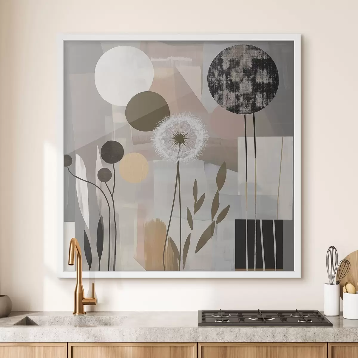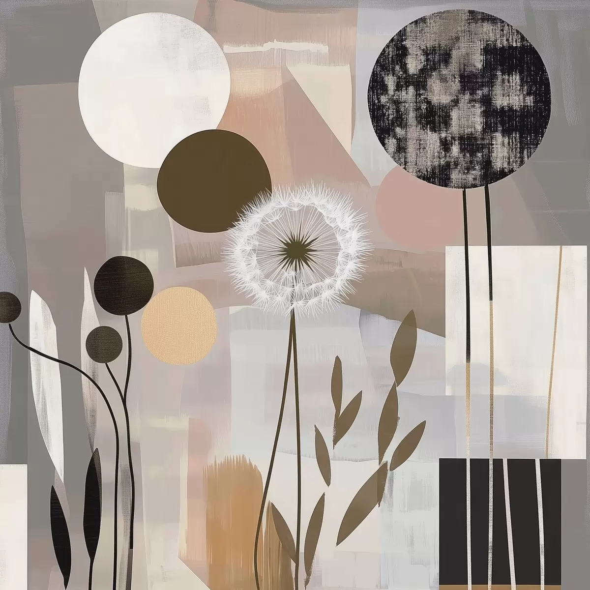 Poster Abstraktion mit Löwenzahn und Pflanzen Nr f47775