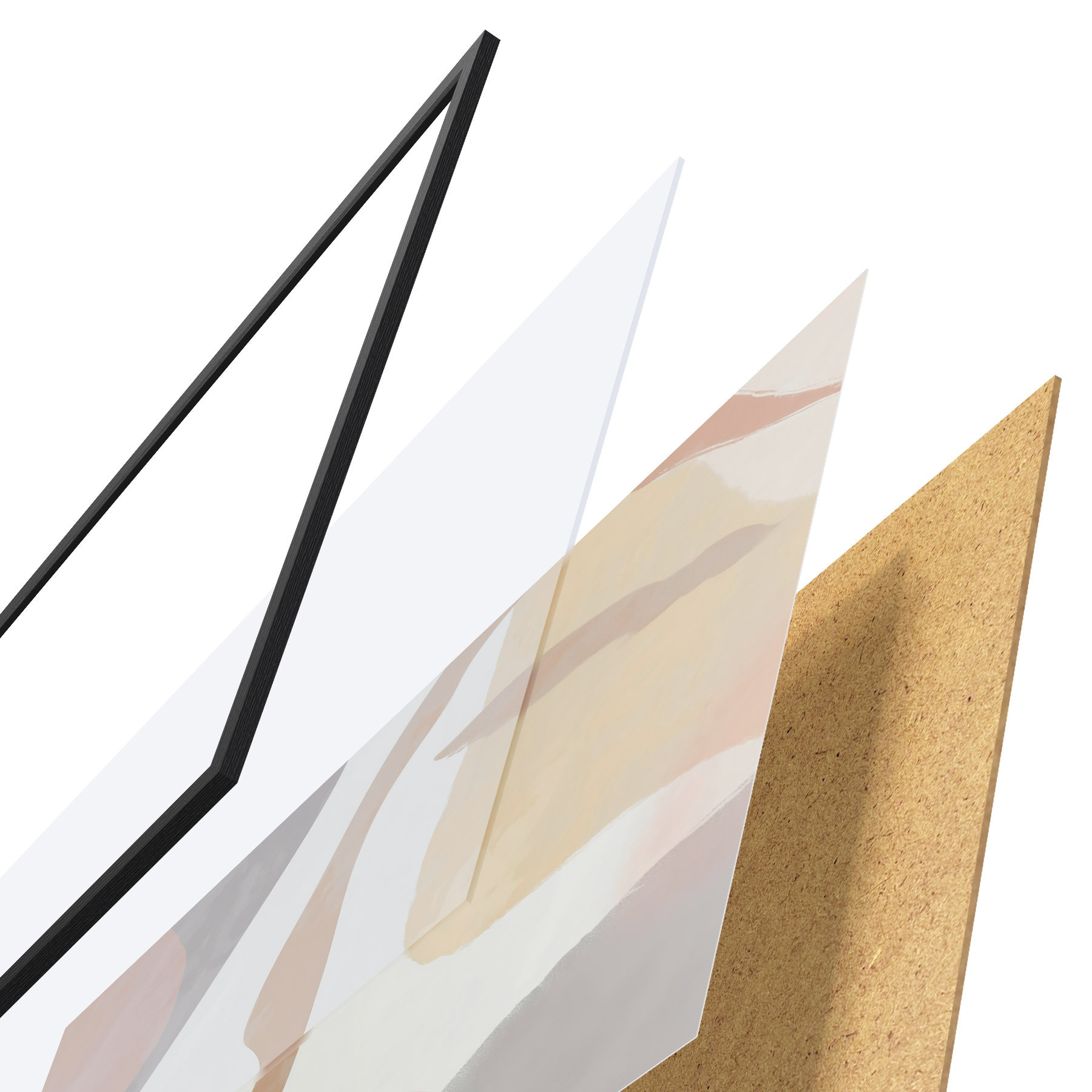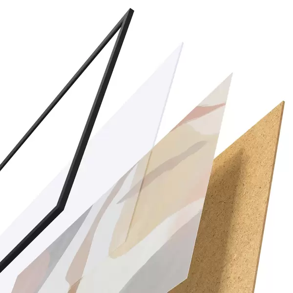 Das Poster besteht aus einem Rahmen, Plexiglas, einem gedruckten Bild und einer Rückwand aus Spanplatten. Dank der Halterungen auf der Rückseite kann das Poster sofort an die Wand gehängt werden.
