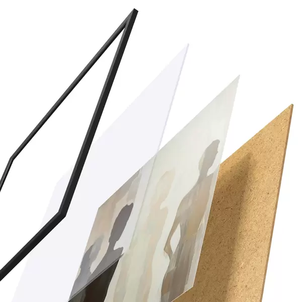 Das Poster besteht aus einem Rahmen, Plexiglas, einem gedruckten Bild und einer Rückwand aus Spanplatten. Dank der Halterungen auf der Rückseite kann das Poster sofort an die Wand gehängt werden.