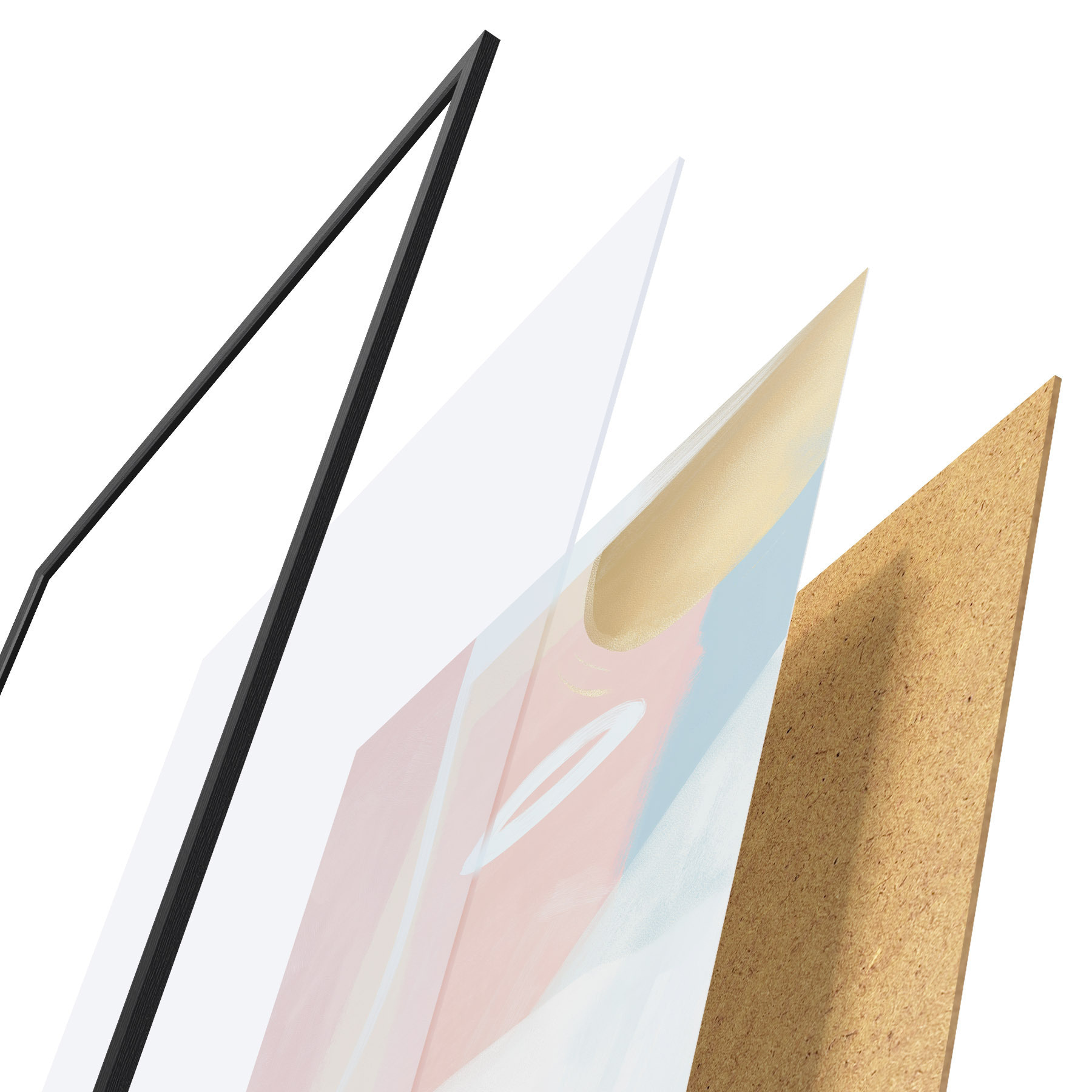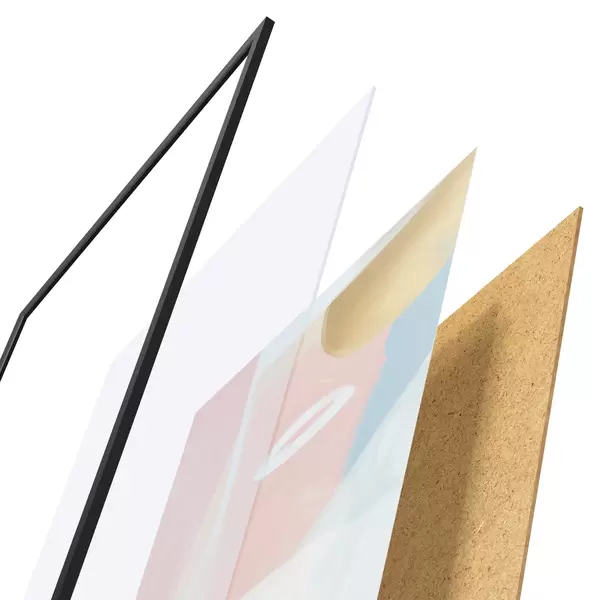 Das Poster besteht aus einem Rahmen, Plexiglas, einem gedruckten Bild und einer Rückwand aus Spanplatten. Dank der Halterungen auf der Rückseite kann das Poster sofort an die Wand gehängt werden.