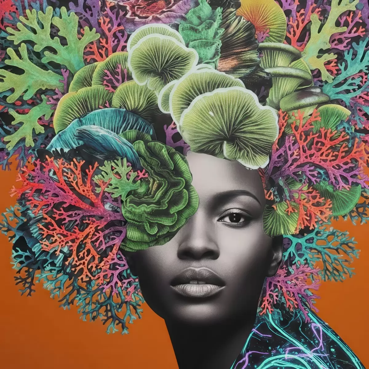 Poster Psychedelisches Porträt mit Pilzen f47787
