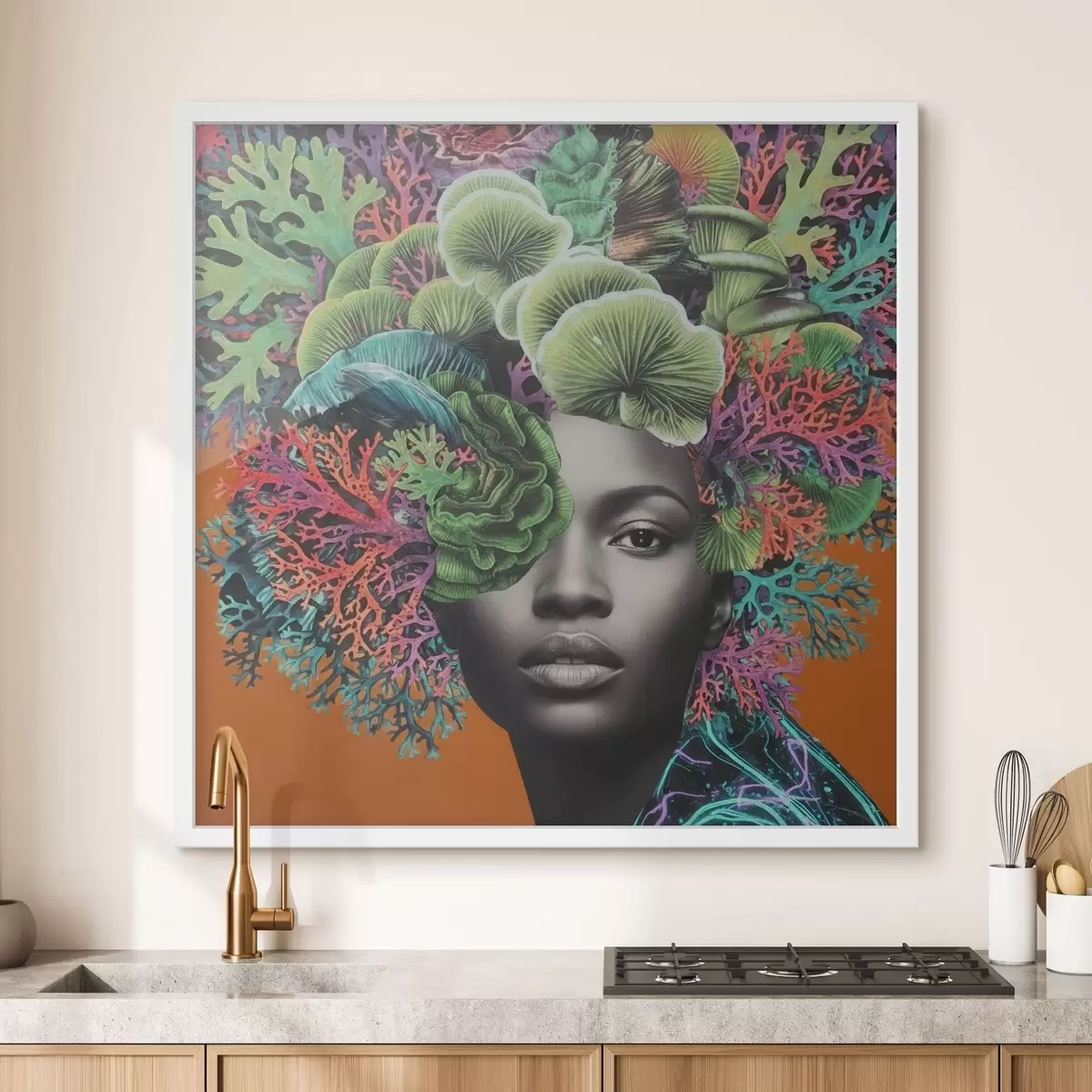 Poster Psychedelisches Porträt mit Pilzen Nr f47787