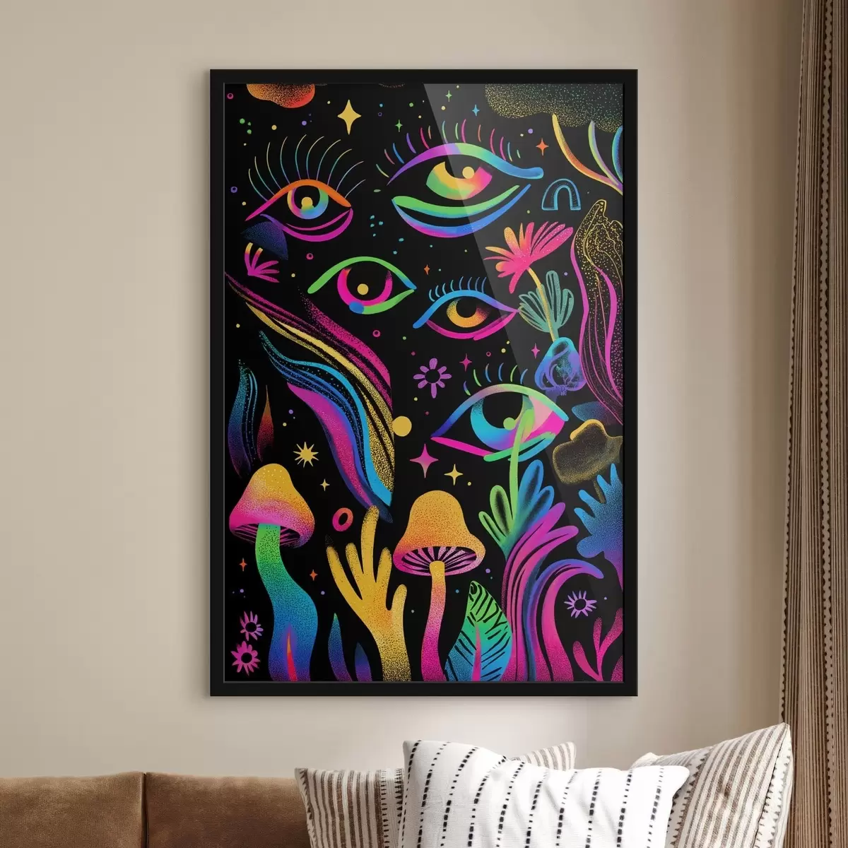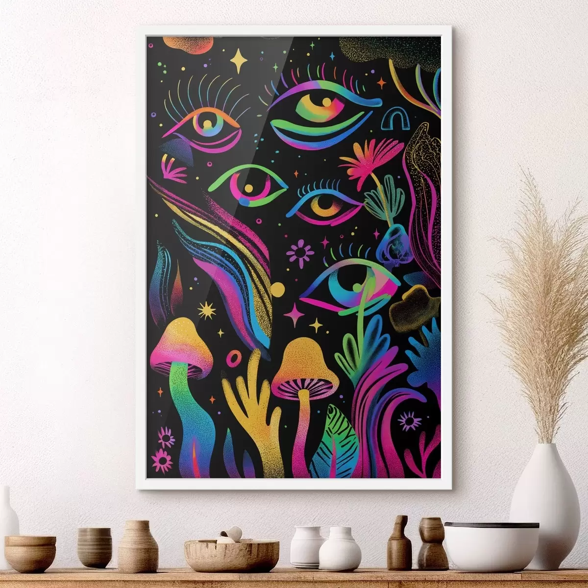 Das Poster besteht aus einem Rahmen, Plexiglas, einem gedruckten Bild und einer Rückwand aus Spanplatten. Dank der Halterungen auf der Rückseite kann das Poster sofort an die Wand gehängt werden.