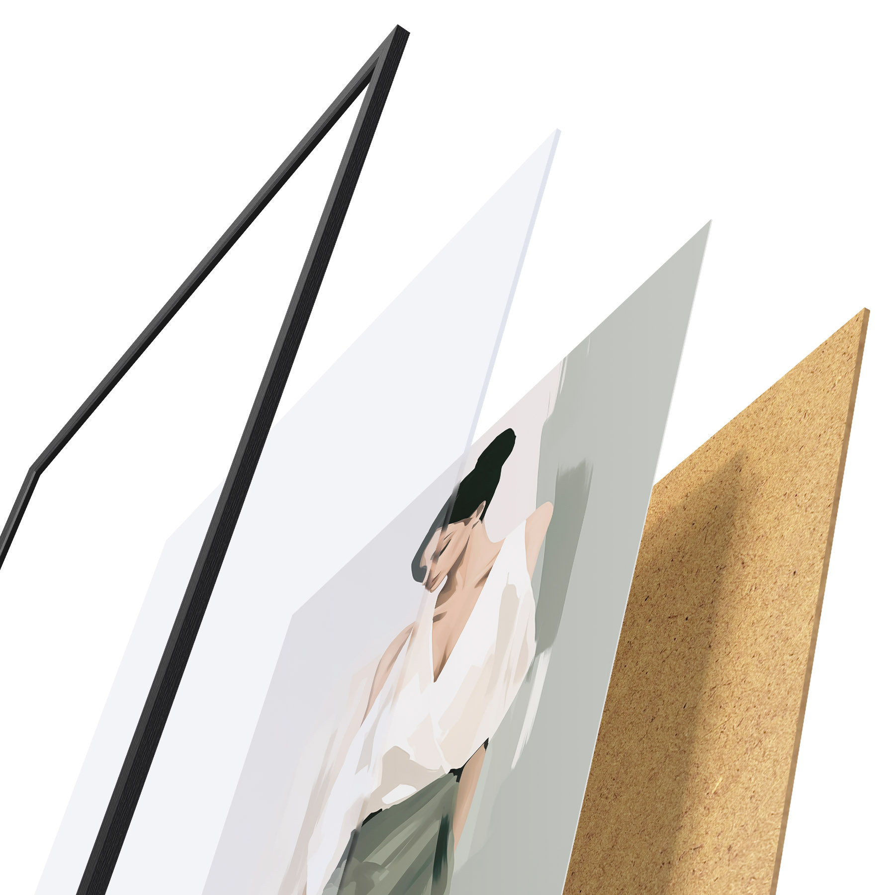 Das Poster besteht aus einem Rahmen, Plexiglas, einem gedruckten Bild und einer Rückwand aus Spanplatten. Dank der Halterungen auf der Rückseite kann das Poster sofort an die Wand gehängt werden.