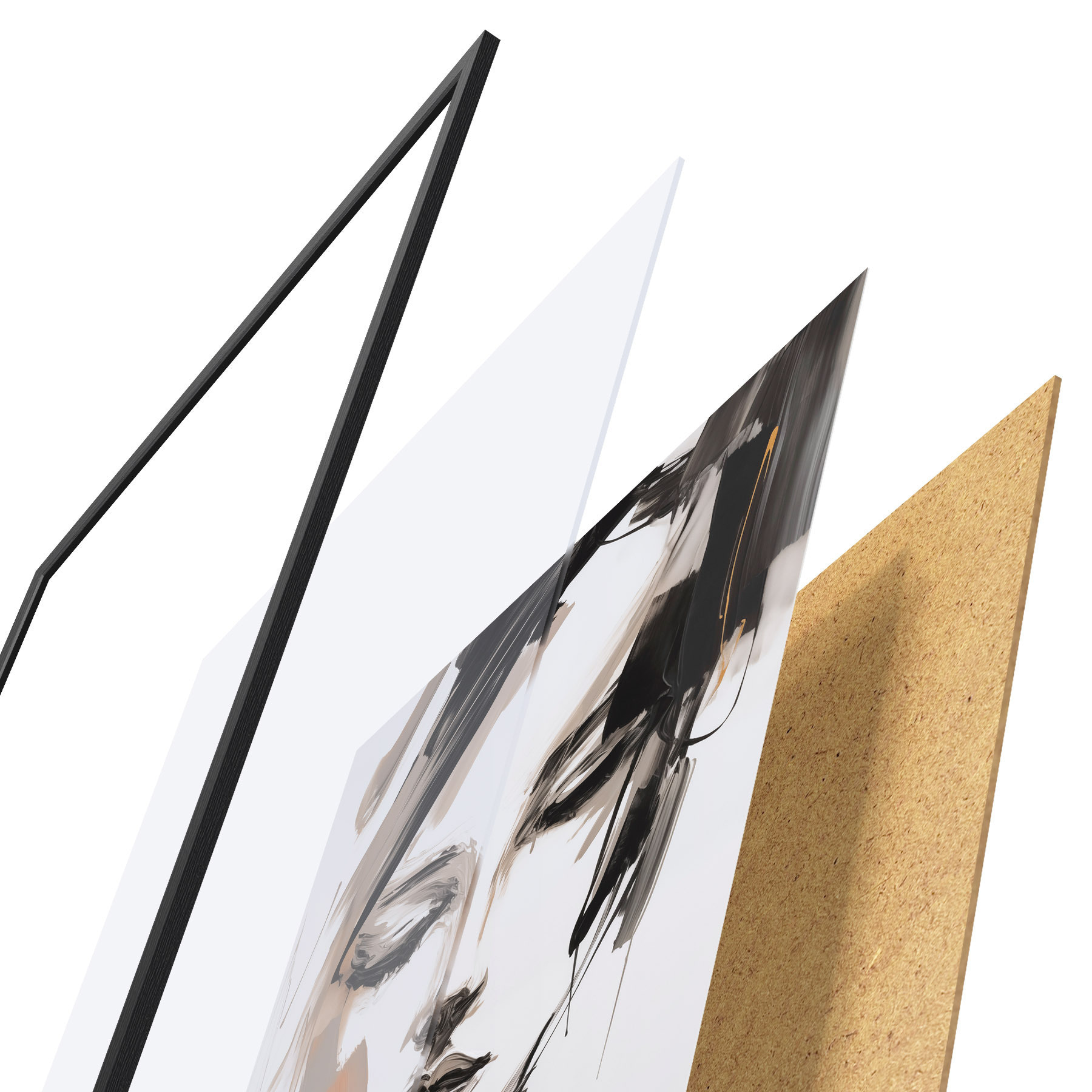 Das Poster besteht aus einem Rahmen, Plexiglas, einem gedruckten Bild und einer Rückwand aus Spanplatten. Dank der Halterungen auf der Rückseite kann das Poster sofort an die Wand gehängt werden.