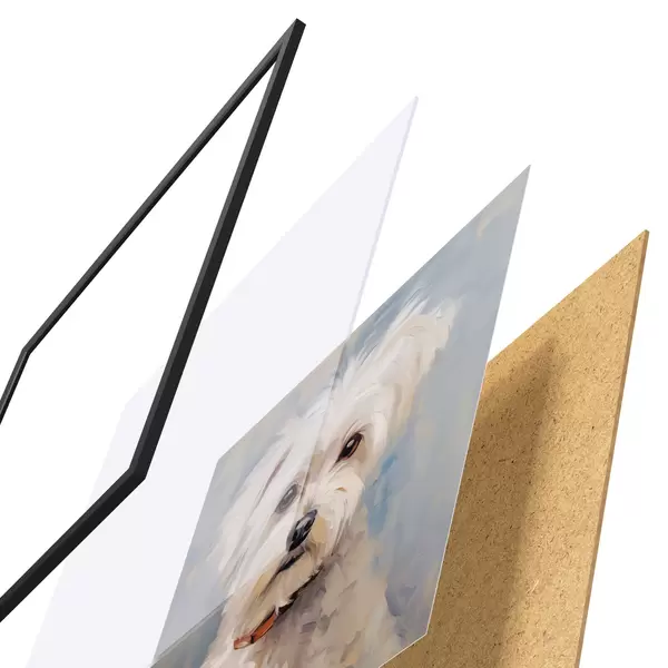 Das Poster besteht aus einem Rahmen, Plexiglas, einem gedruckten Bild und einer Rückwand aus Spanplatten. Dank der Halterungen auf der Rückseite kann das Poster sofort an die Wand gehängt werden.