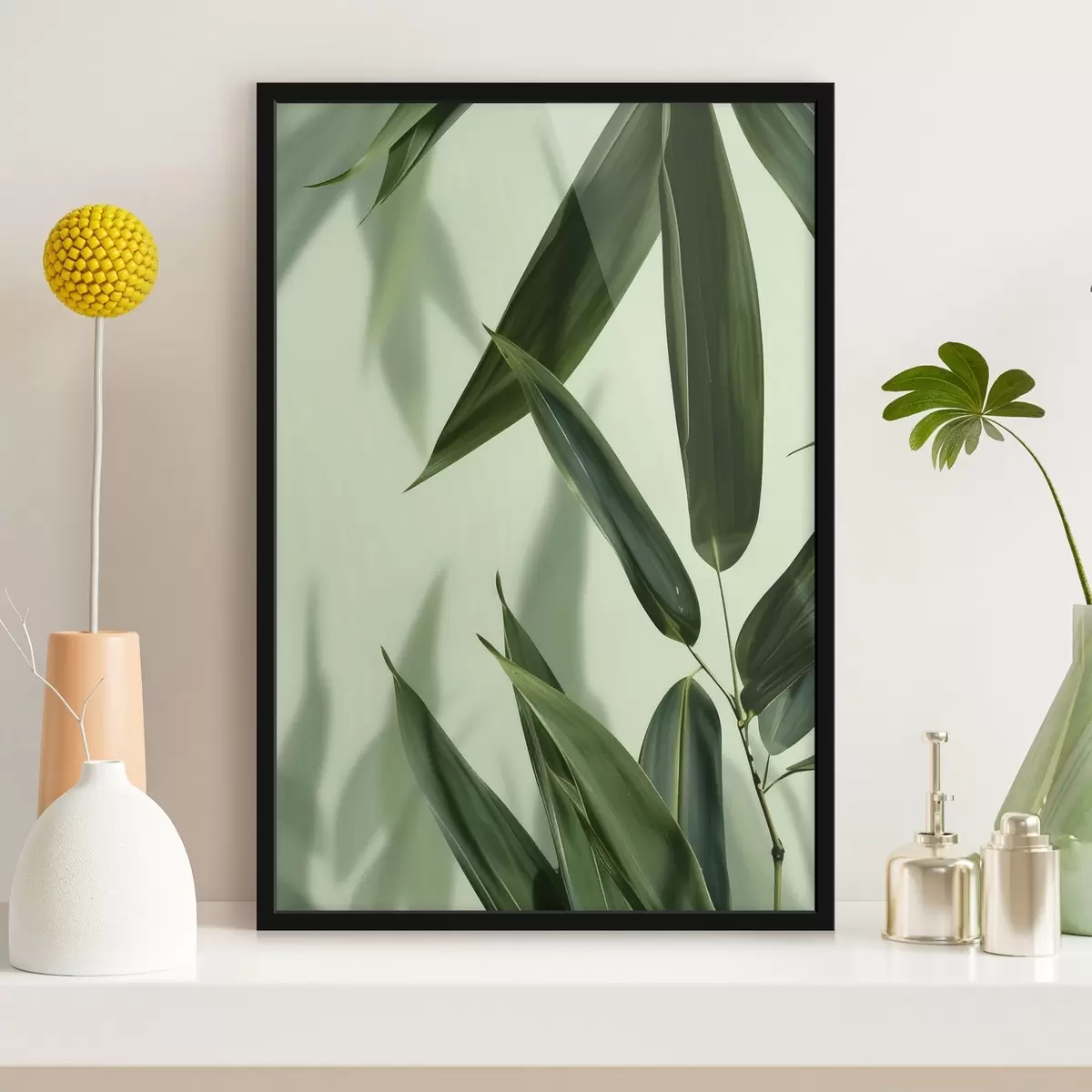 Poster Bambusblätter auf hellem Hintergrund Nr f47815