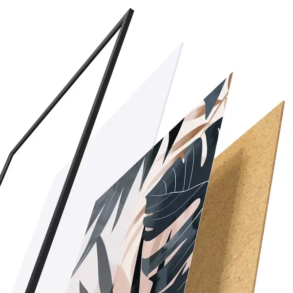 Das Poster besteht aus einem Rahmen, Plexiglas, einem gedruckten Bild und einer Rückwand aus Spanplatten. Dank der Halterungen auf der Rückseite kann das Poster sofort an die Wand gehängt werden.