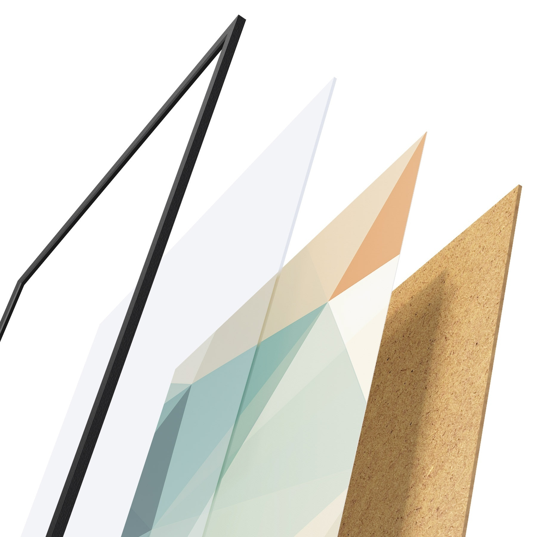 Das Poster besteht aus einem Rahmen, Plexiglas, einem gedruckten Bild und einer Rückwand aus Spanplatten. Dank der Halterungen auf der Rückseite kann das Poster sofort an die Wand gehängt werden.