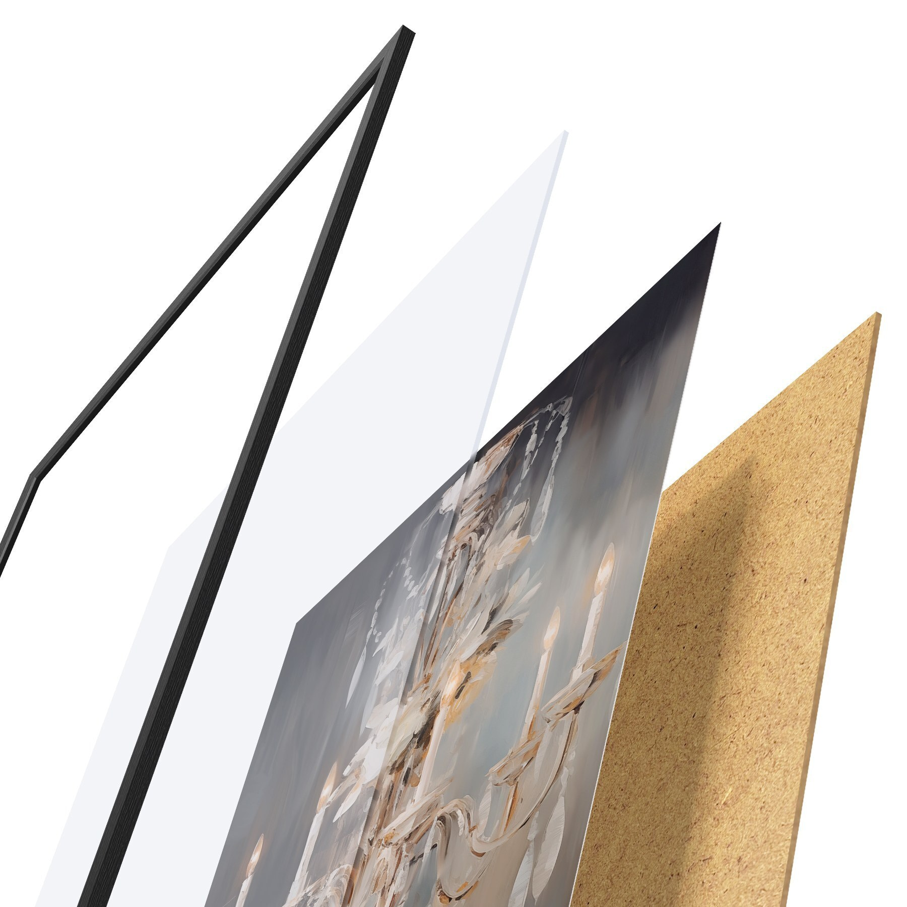 Das Poster besteht aus einem Rahmen, Plexiglas, einem gedruckten Bild und einer Rückwand aus Spanplatten. Dank der Halterungen auf der Rückseite kann das Poster sofort an die Wand gehängt werden.