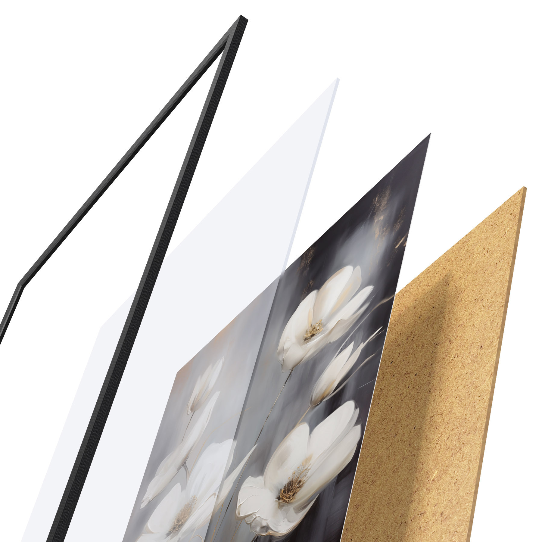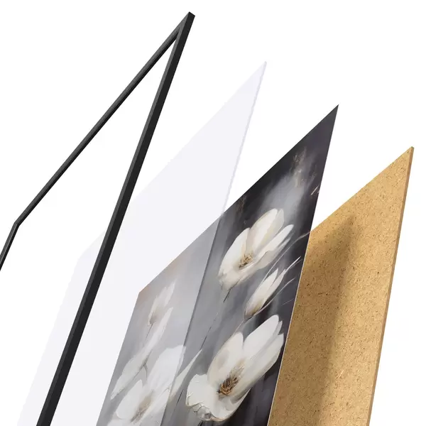 Das Poster besteht aus einem Rahmen, Plexiglas, einem gedruckten Bild und einer Rückwand aus Spanplatten. Dank der Halterungen auf der Rückseite kann das Poster sofort an die Wand gehängt werden.