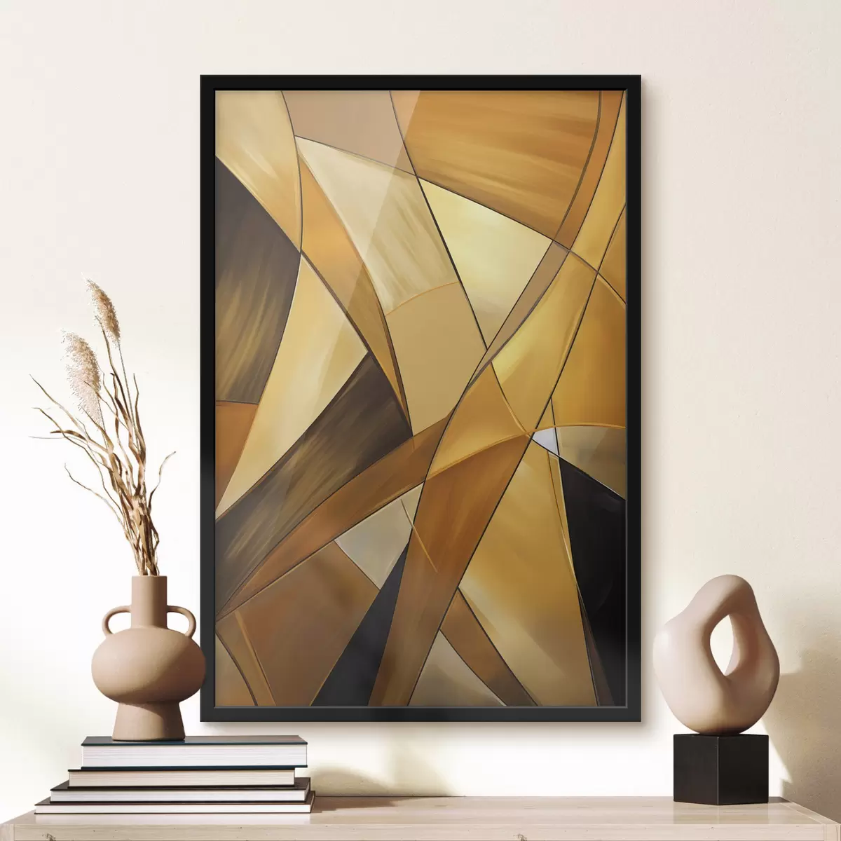 Poster Abstrakte geometrische Formen in Orange-, Braun- und Weißtönen mit dünnen Konturen auf strukturiertem Hintergrund Nr f47864
