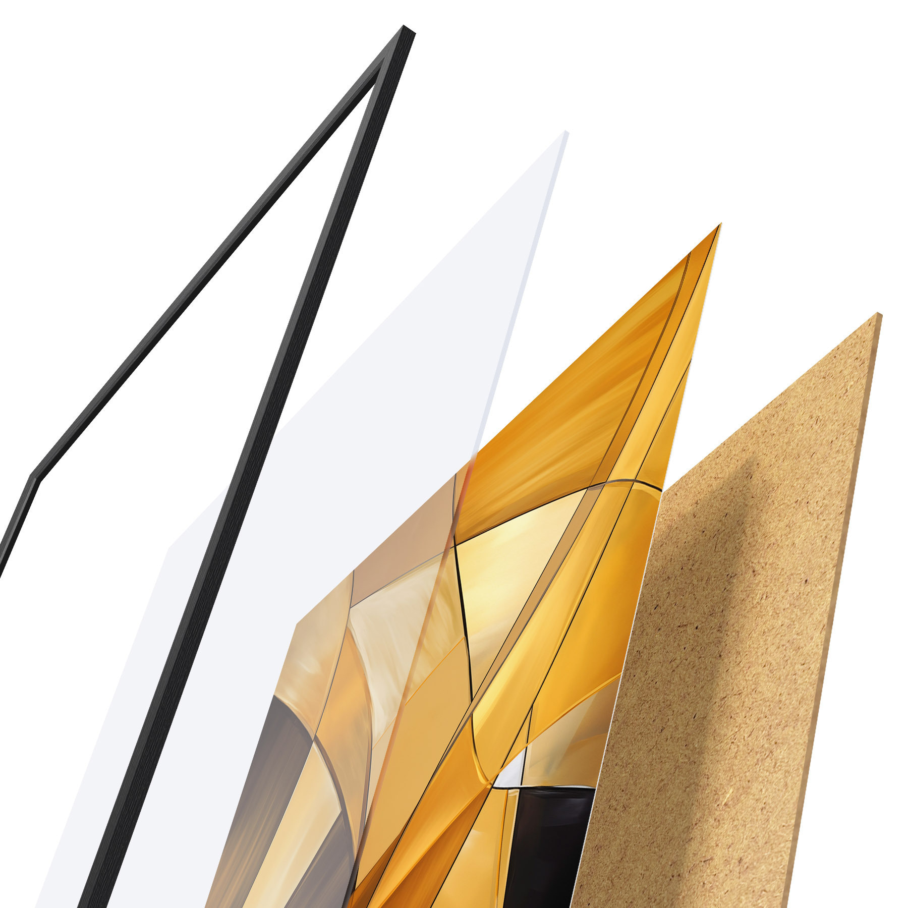 Das Poster besteht aus einem Rahmen, Plexiglas, einem gedruckten Bild und einer Rückwand aus Spanplatten. Dank der Halterungen auf der Rückseite kann das Poster sofort an die Wand gehängt werden.