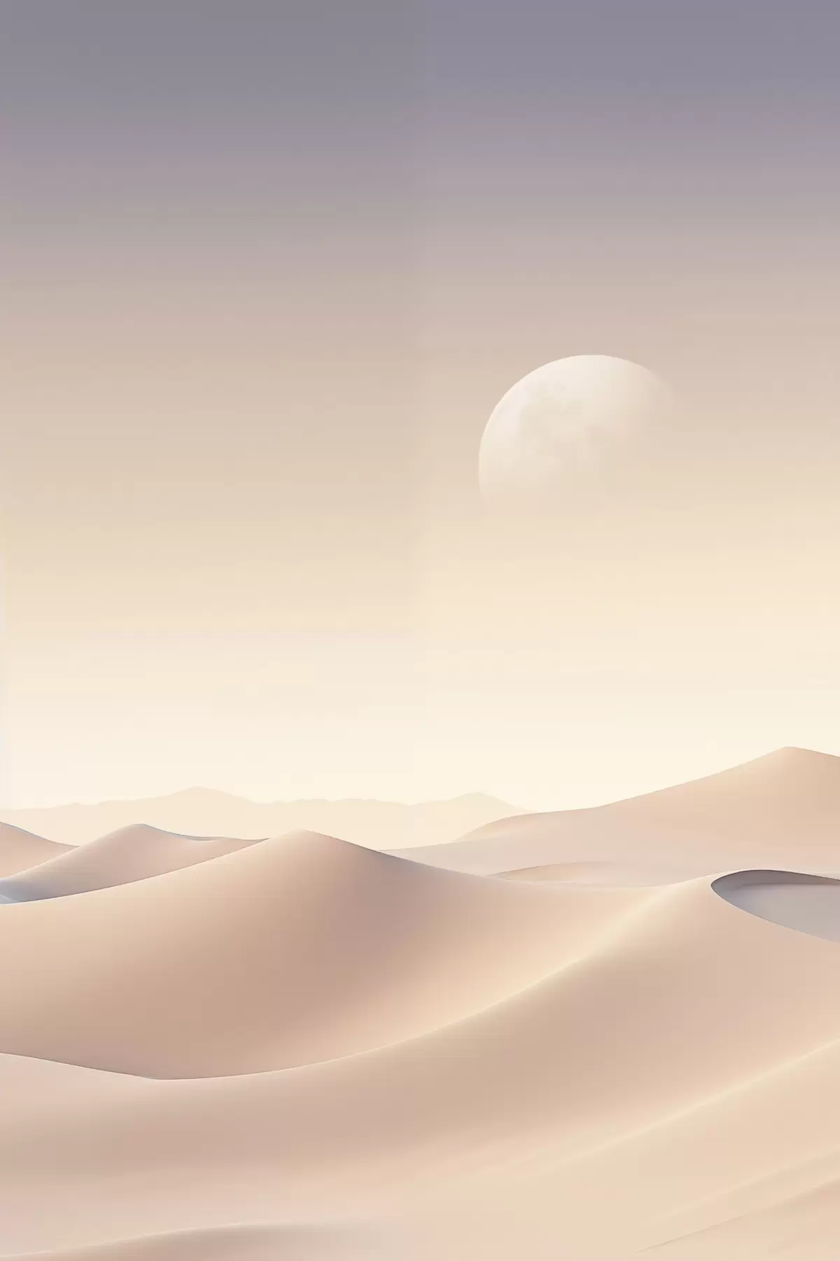 Poster Eine Wüstenlandschaft mit sanften Sanddünen unter einem zarten Pastellhimmel, im Hintergrund entfernte Berge. f47866