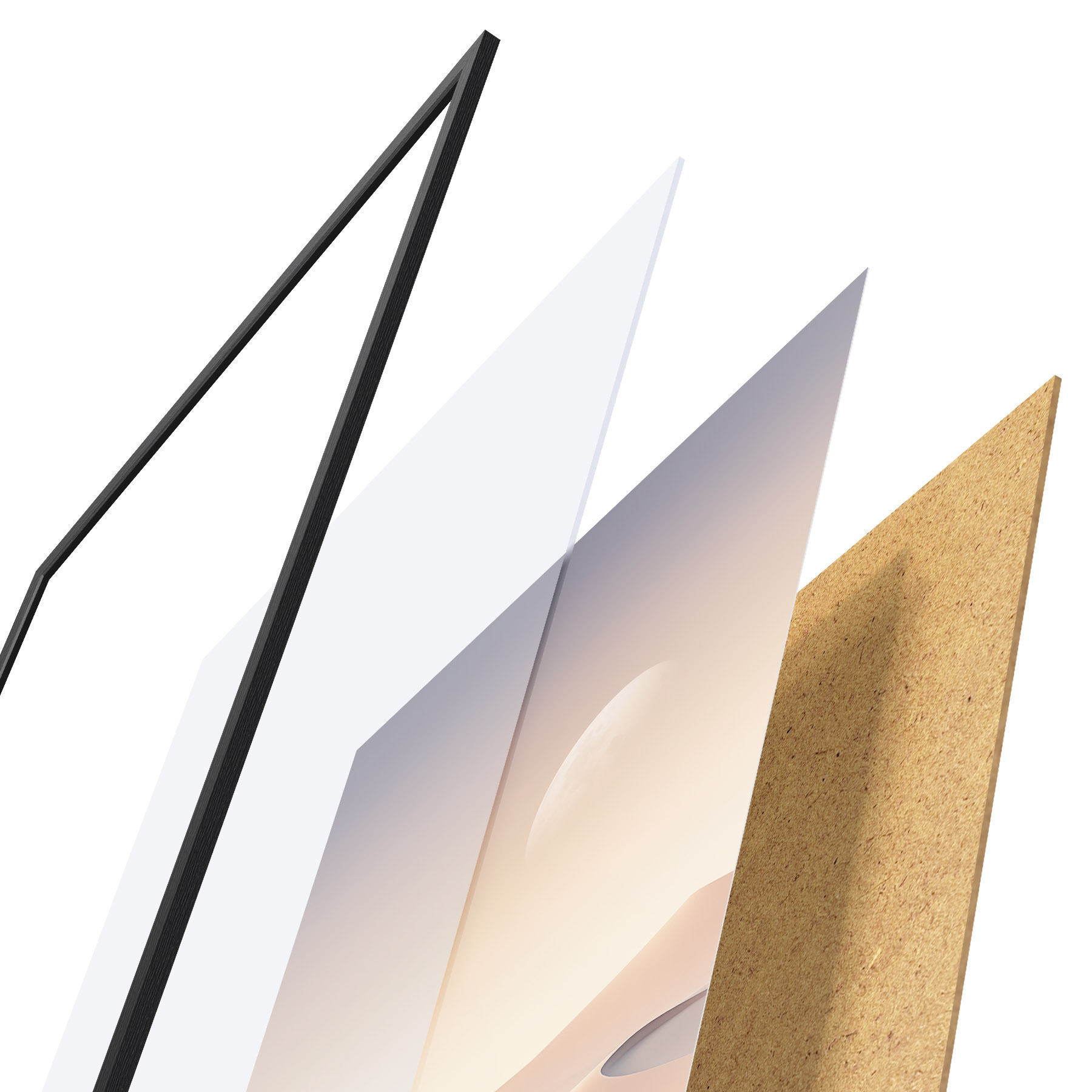 Das Poster besteht aus einem Rahmen, Plexiglas, einem gedruckten Bild und einer Rückwand aus Spanplatten. Dank der Halterungen auf der Rückseite kann das Poster sofort an die Wand gehängt werden.
