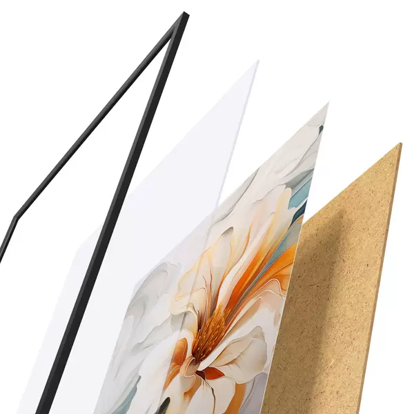 Das Poster besteht aus einem Rahmen, Plexiglas, einem gedruckten Bild und einer Rückwand aus Spanplatten. Dank der Halterungen auf der Rückseite kann das Poster sofort an die Wand gehängt werden.