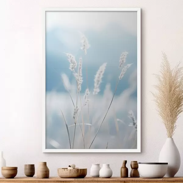 Poster Weißes, flauschiges Gras vor einem sanften blauen Himmel, mit geringer Tiefenschärfe Nr f47880