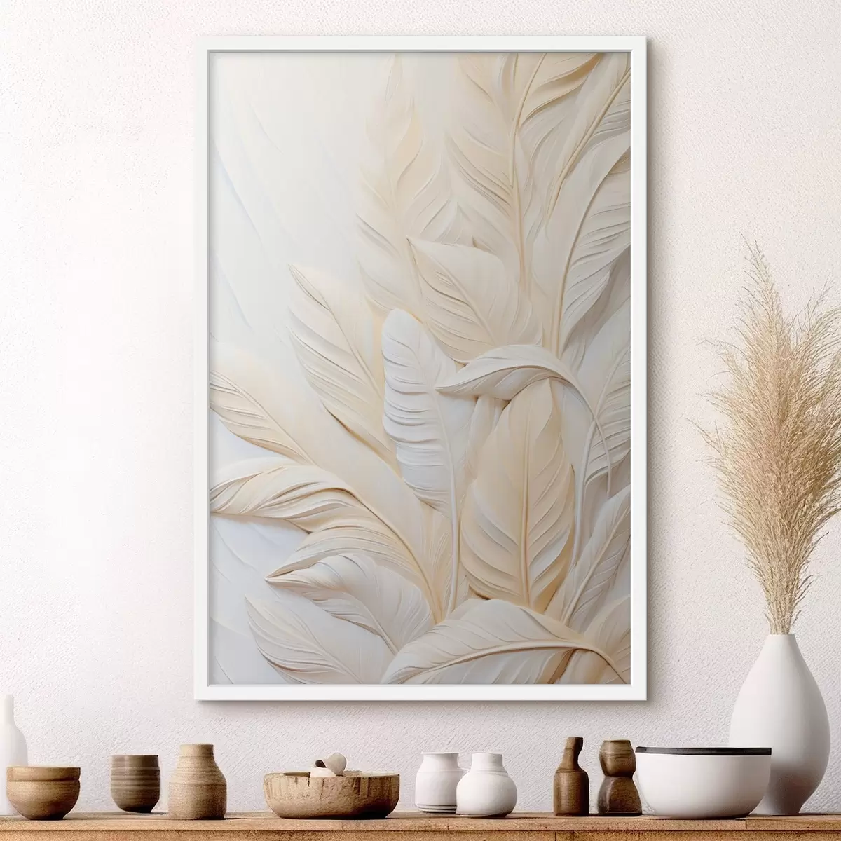 Poster Cremefarbene Federn, die sich überlappen, mit einem weichen, hellen Hintergrund Nr f47883