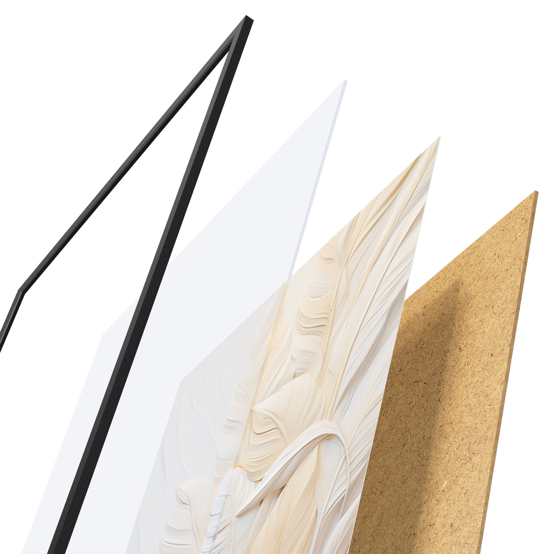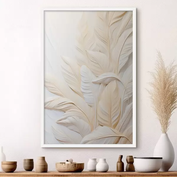 Poster Cremefarbene Federn, die sich überlappen, mit einem weichen, hellen Hintergrund f47883