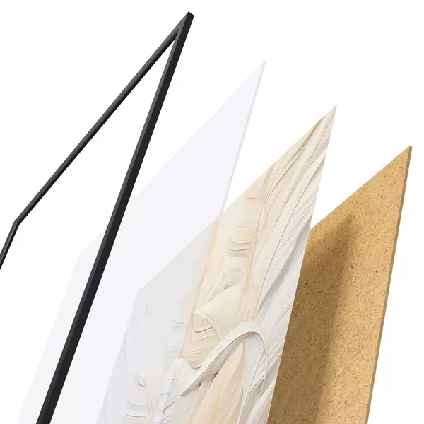 Das Poster besteht aus einem Rahmen, Plexiglas, einem gedruckten Bild und einer Rückwand aus Spanplatten. Dank der Halterungen auf der Rückseite kann das Poster sofort an die Wand gehängt werden.