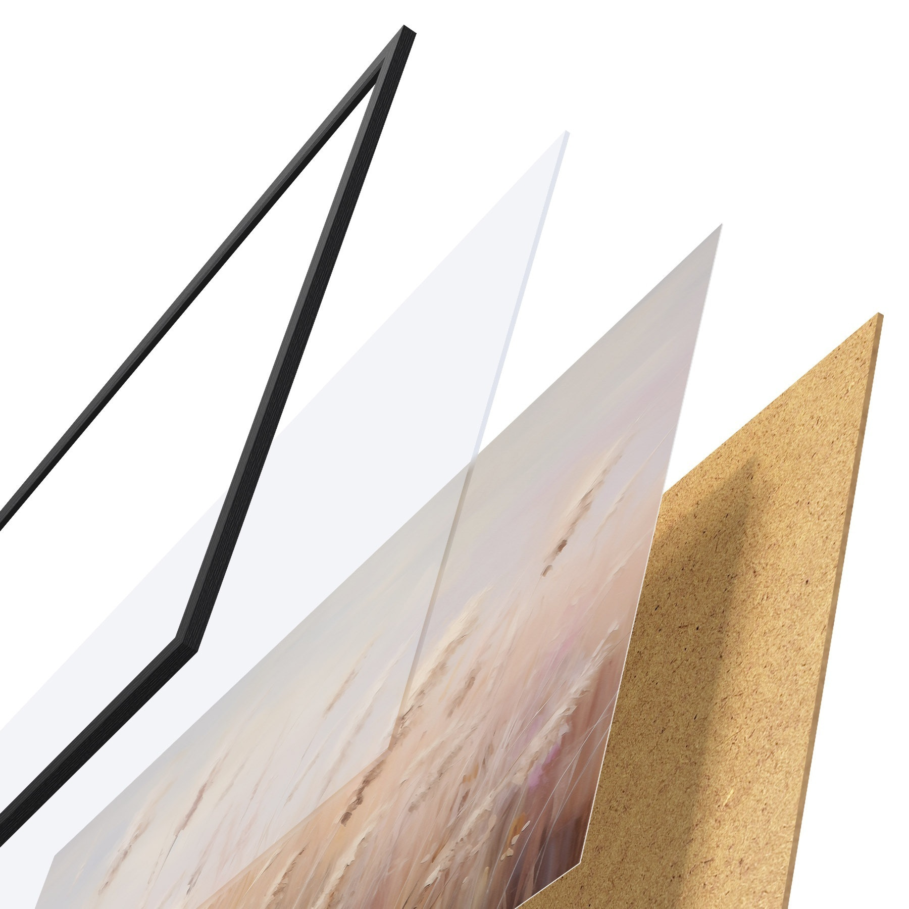 Das Poster besteht aus einem Rahmen, Plexiglas, einem gedruckten Bild und einer Rückwand aus Spanplatten. Dank der Halterungen auf der Rückseite kann das Poster sofort an die Wand gehängt werden.
