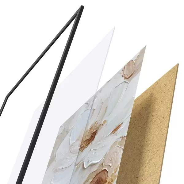 Das Poster besteht aus einem Rahmen, Plexiglas, einem gedruckten Bild und einer Rückwand aus Spanplatten. Dank der Halterungen auf der Rückseite kann das Poster sofort an die Wand gehängt werden.
