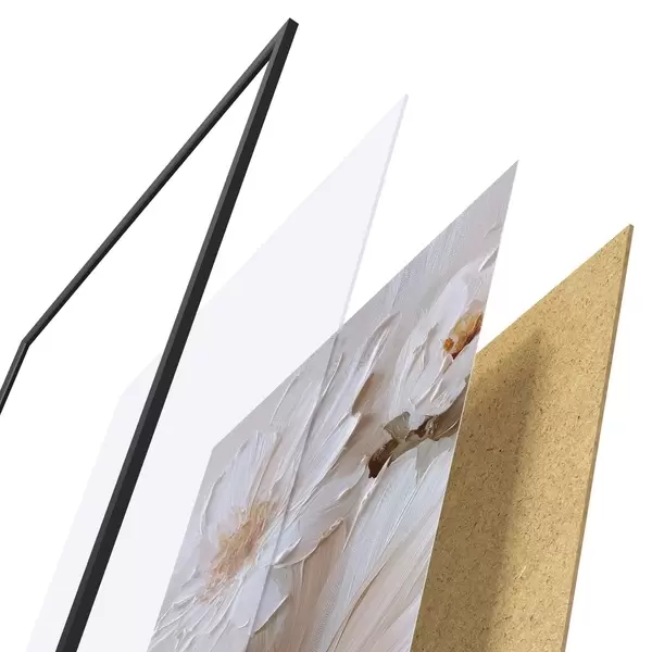 Das Poster besteht aus einem Rahmen, Plexiglas, einem gedruckten Bild und einer Rückwand aus Spanplatten. Dank der Halterungen auf der Rückseite kann das Poster sofort an die Wand gehängt werden.