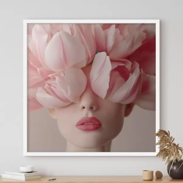 Poster Frauenporträt mit rosa Blütenblättern Nr f47920