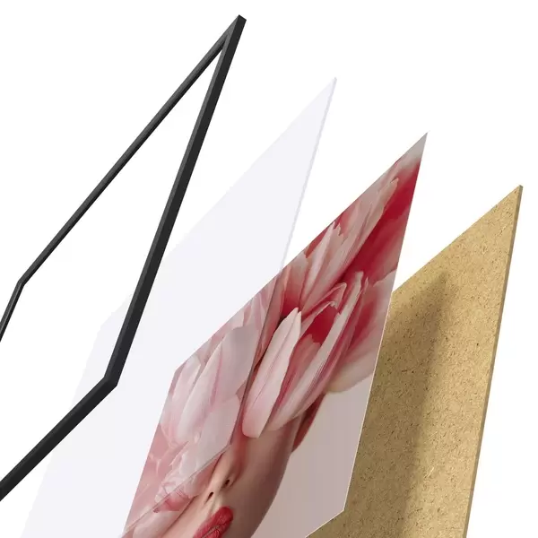 Das Poster besteht aus einem Rahmen, Plexiglas, einem gedruckten Bild und einer Rückwand aus Spanplatten. Dank der Halterungen auf der Rückseite kann das Poster sofort an die Wand gehängt werden.